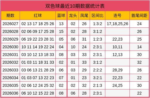 双色球第2026036期奖号为:06、10、12、15、22、28 + 08,其中红球号码奇偶比为1:5,大小比为2:4,012路比为3:3:0,三区比为2:3:1。