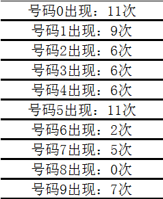 另外,在历史同时开奖中,号码0-9诀别出现: