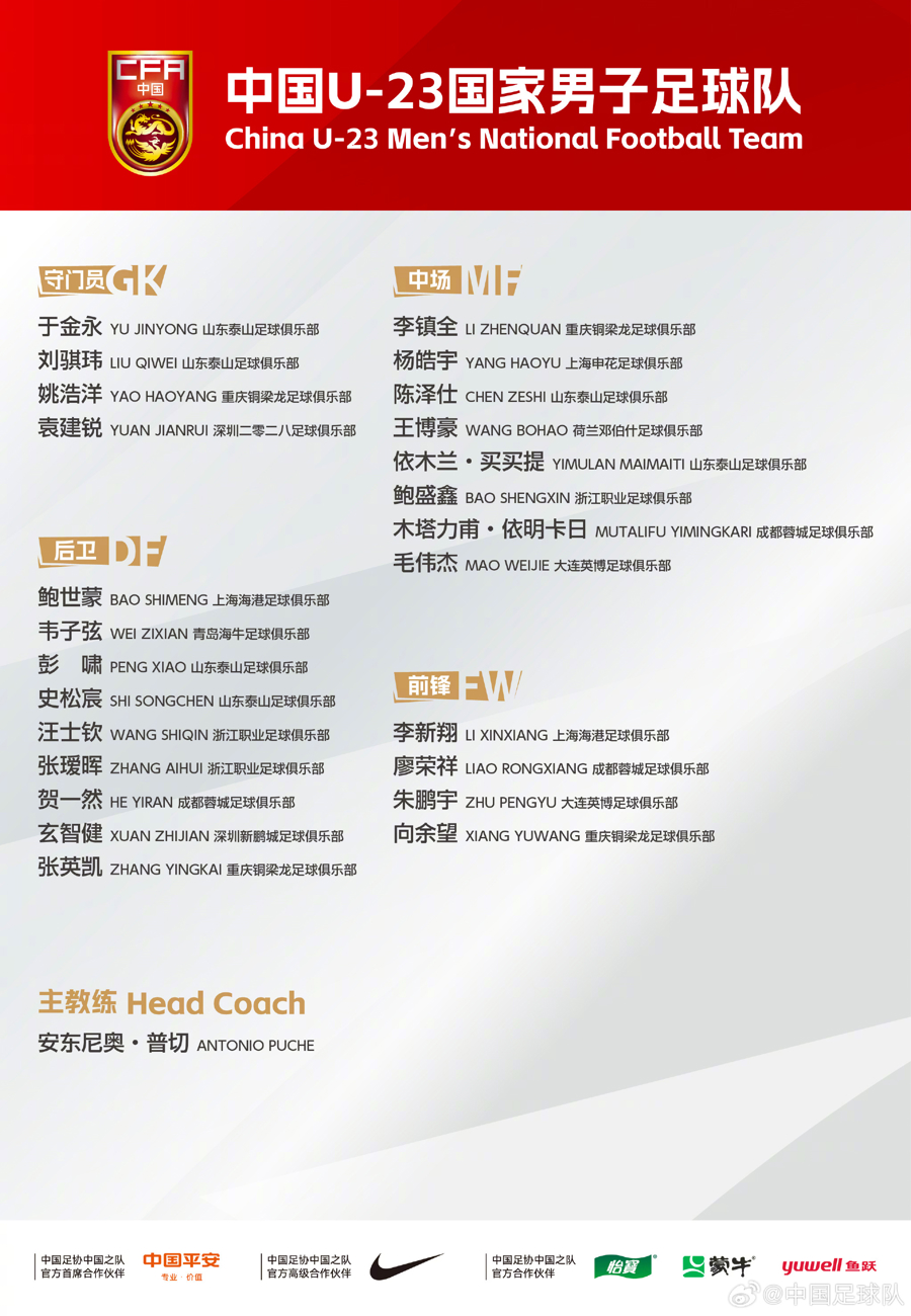 就在成年国足公布集训名单之后,U23国足也在不久之后公布了集训名单,九名适龄球员入选国足固然给球队的备战带来了一定的影响,但也给了安东尼奥不雅察更多适龄优秀球员的契机。在这份名单中,因伤缺席U23亚洲杯的海港球员李新翔再行入选,因在热身赛中出现不安静四肢而缺席U23亚洲杯的汪士钦回到球队,在终末时辰无缘U23亚洲杯的朱鹏宇同样入选。除此除外,本赛季中超前两轮打满全场的青岛海牛球员韦子弦入选,这位20岁小将还是通过干事赛场证据了本身的才能,遵循于重庆铜梁龙的右边后卫张英凯也入选球队。这两名边后卫入选,无疑是为了填补胡荷韬和杨希入选国足之后产生的东说念主员空白。