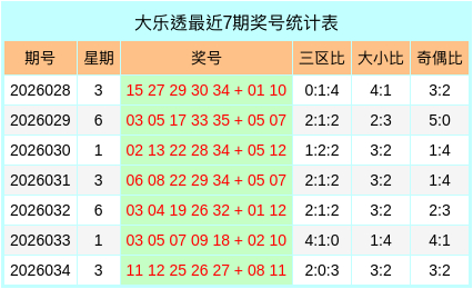 当期红球号码大小比为3:3,三区比为3:1:2,奇偶比为2:4,3组连号02,03,04,31,32。蓝球开出【小偶】形态的号码4。