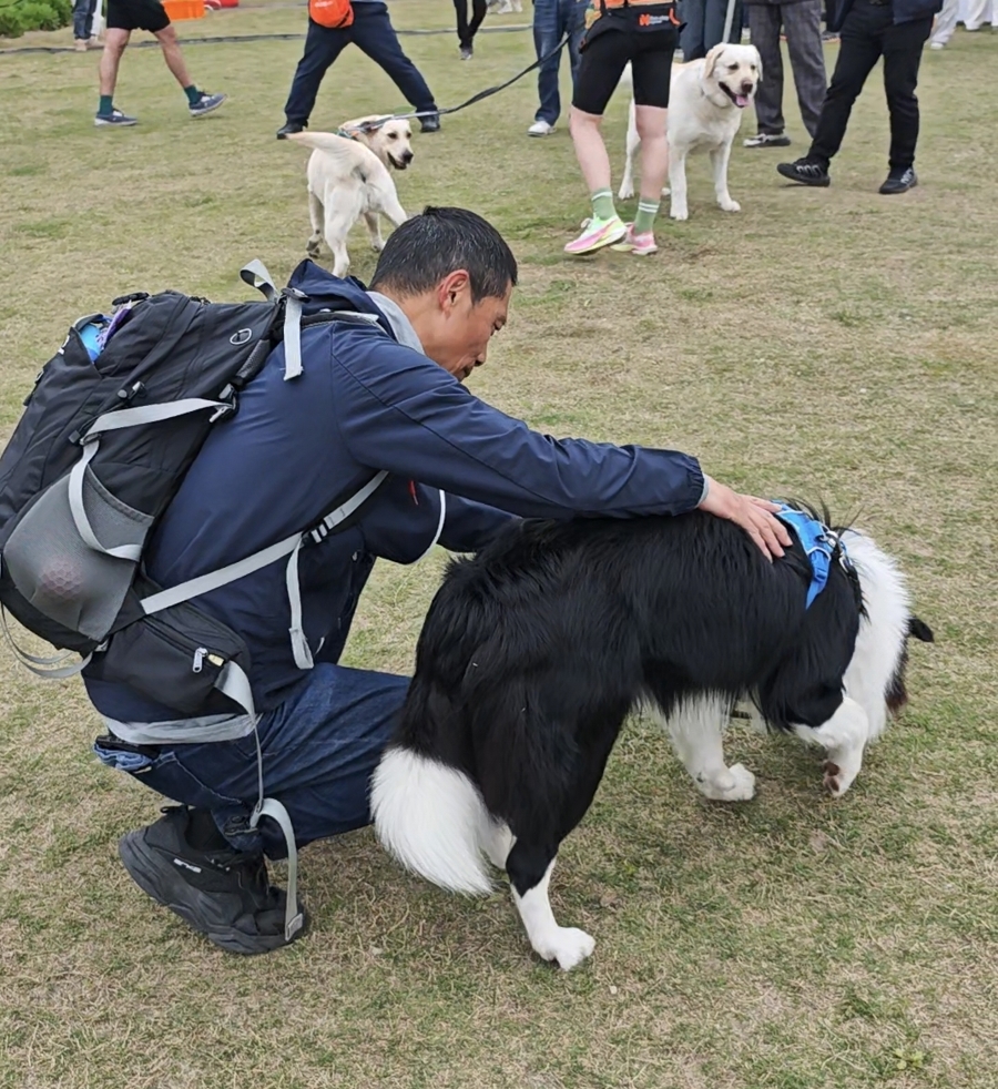 “它诚然不会讲话,但至极懂事,学东西也很快。”在他看来,东谈主与宠的奉陪是互相的,爱意流淌亦然互相的,为此,他满足勇敢尝试新事物,带“三宝”来比赛,参与多样稳健狗狗天性和需要的行径。