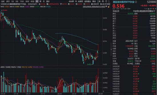港股通改换药攻势尤为迅猛,520880午后涨幅最高飙至7.19%,收盘强势站上半年线!全天成交10.84亿元,创2025年8月4日以来新高!